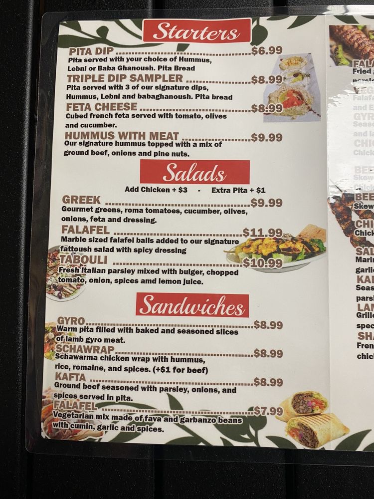 Warm pita filled with baked and seasoned slices of lamb gyro meat.